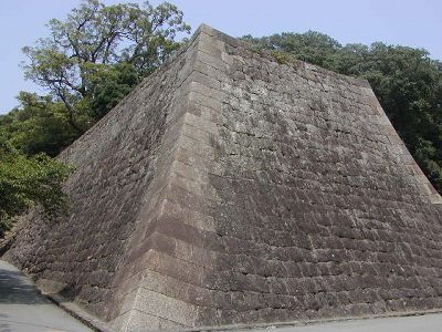 松の丸櫓台高石垣。実際はあまりの大改修ぶりに幕府に疑惑を持たれたため櫓は建たなかった。