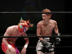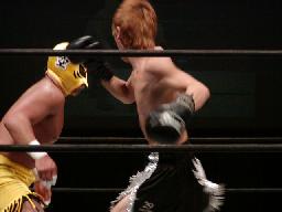 鳥羽はクーガーにパンチ、キック連打(右写真)。クーガーはコンドルにタッチ。