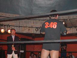 一方佐々木&鳥羽組は先週同様「オールナイトDDT」。今日のおハガキは「茅ヶ崎の『佐々木大好きっ子』さん。私はもう5年もDDTを見てて、すっかりハマってちょっとヤバイかな〜って思ってます。私は佐々木さんはハードヒット路線より、ヒールの方が似合ってると思います。もっと悪いことをして、最後は雲龍で決めてください。」佐々木上機嫌。「そんな2人のチーム名は『からまわり』。」佐々木ハガキを破り捨てる。鳥羽「それでは曲行ってみましょう、曲はOFFSPRINGで“What happened to you”(笛)」で入場。