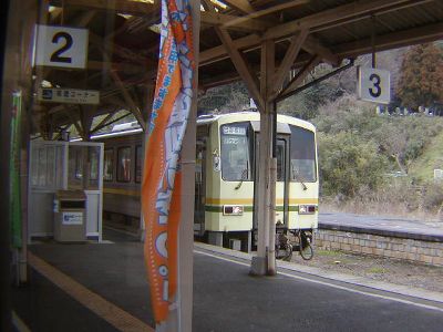 朝から両方の内湯に入り、10時発の旅館の送迎車で倉吉駅に。停まっていた特急スーパーはくと。これに乗るわけではなく、各駅停車で出雲市へ。今日もやっぱり遅れた。