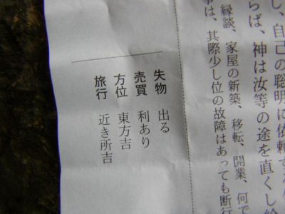 おみくじ。旅行運「近き所吉」。結構遠くまで来ちゃってるけど。