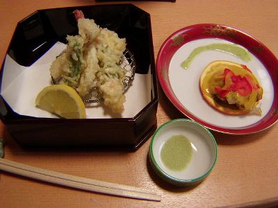 天ぷらとなんか魚の照り焼き。